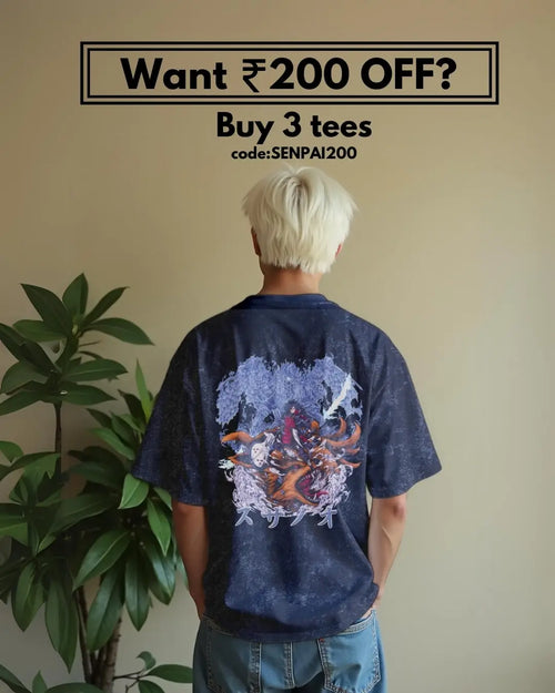 I've been watching Bleach since childhood and this tee instantly caught my eye. The acid wash effect gives it such a unique look - just like Ichigo's bankai transformation! The oversized fit is perfect, not too baggy but still gives that streetwear vibe. The print quality is exceptional, with all characters (Ichigo, Urahara, Aizen, and Kenpachi) looking crisp and detailed. Already received compliments from fellow anime fans. Worth every rupee!