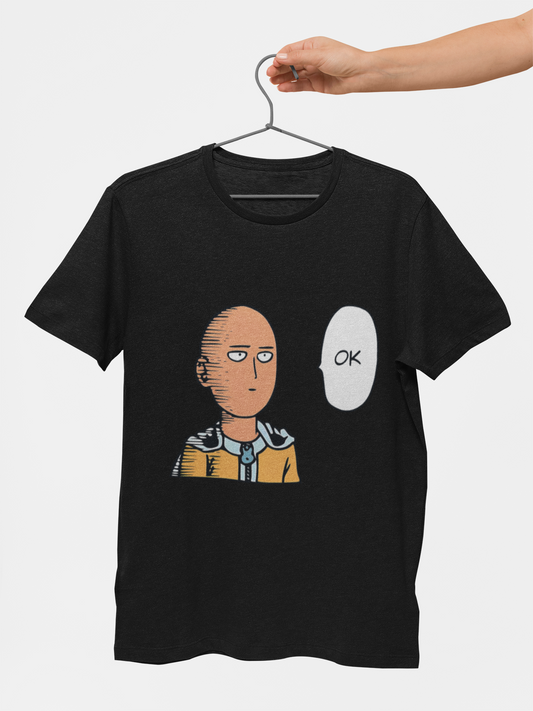 Saitama Funny Face Half-Sleeve T-Shirt - Quirky Anime Style