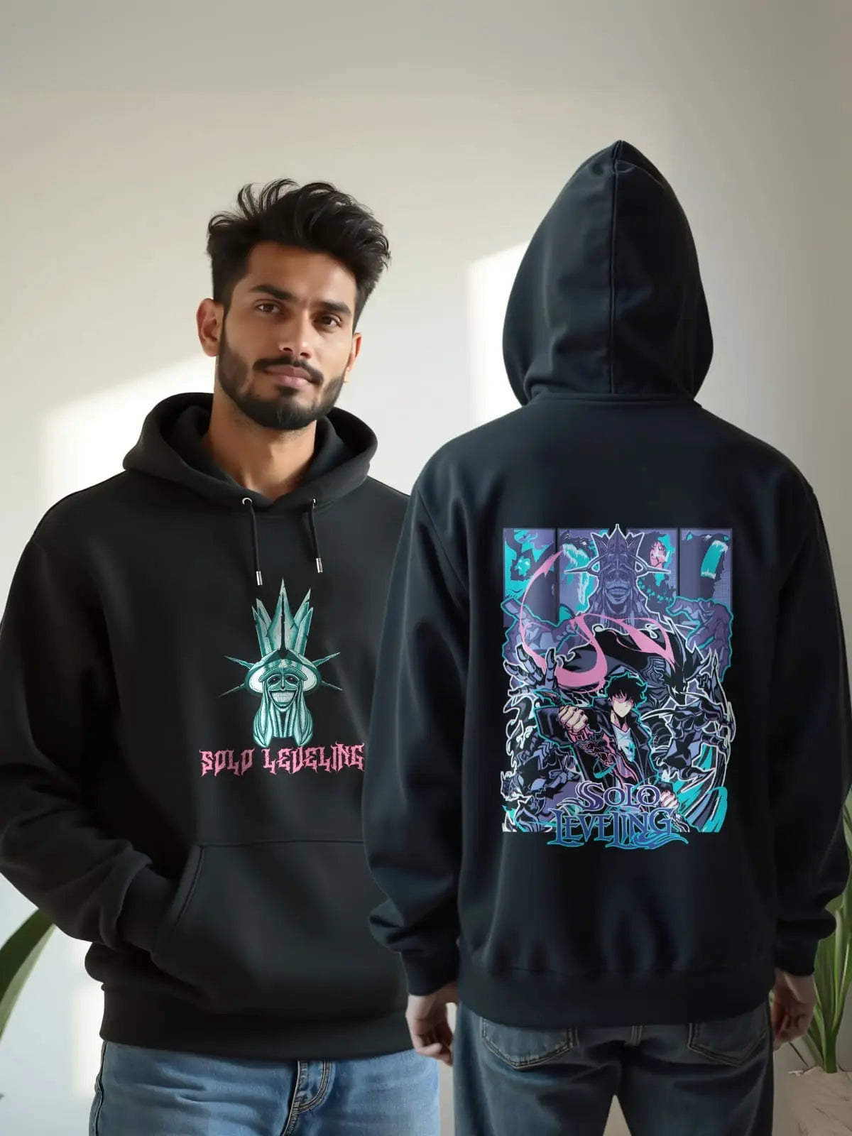 Channel Sung Jin Woo's power with this 240 GSM Solo Leveling hoodie. Premium comfort and style for true fans.